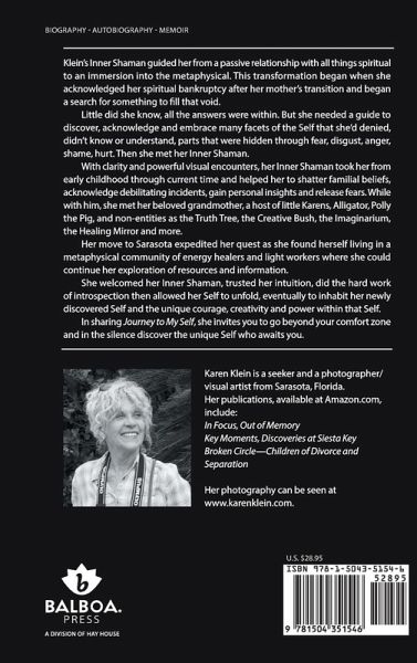Klein's Inner Shaman guided her from a passive relationship with all things spiritual to an immersion into the metaphysical. This transformation began when she acknowledged her spiritual bankruptcy after her mother's transition and began a search for something to fill that void. Little did she know, all the answers were within. But she needed a guide to discover, acknowledge and embrace many facets of the Self that she'd denied, didn't know or understand, parts that were hidden through fear, disgust, anger, shame, hurt. Then she met her Inner Shaman. With clarity and powerful visual encounters, her Inner Shaman took her from early childhood through current time and helped her to shatter familial beliefs, acknowledge debilitating incidents, gain personal insights and release fears. While with him, she met her beloved grandmother, a host of little Karens, Alligator, Polly the Pig, and non-entities as the Truth Tree, the Creative Bush, the Imaginarium, the Healing Mirror and more. Her move to Sarasota expedited her quest as she found herself living in a metaphysical community of energy healers and light workers where she could continue her exploration of resources and information. She welcomed her Inner Shaman, trusted her intuition, did the hard work of introspection then allowed her Self to unfold, eventually to inhabit her newly discovered Self and the unique courage, creativity and power within that Self. In sharing Journey to My Self, she invites you to go beyond your comfort zone and in the silence discover the unique Self who awaits you.