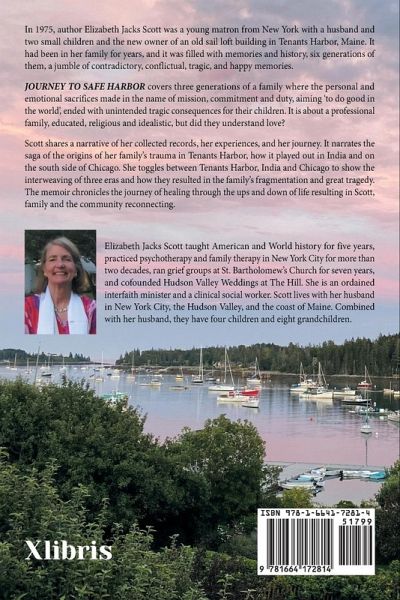 In 1975, author Elizabeth Jacks Scott was a young matron from New York with a husband and two small children and the new owner of an old sail loft building in Tenants Harbor, Maine. It had been in her family for years, and it was filled with memories and history, six generations of them, a jumble of contradictory, conflictual, tragic, and happy memories. JOURNEY TO SAFE HARBOR covers three generations of a family where the personal and emotional sacrifices made in the name of mission, commitment and duty, aiming 'to do good in the world', ended with unintended tragic consequences for their children. It is about a professional family, educated, religious and idealistic, but did they understand love? Scott shares a narrative of her collected records, her experiences, and her journey. It narrates the saga of the origins of her family's trauma in Tenants Harbor, how it played out in India and on the south side of Chicago. She toggles between Tenants Harbor, India and Chicago to show the interweaving of three eras and how they resulted in the family's fragmentation and great tragedy. The memoir chronicles the journey of healing through the ups and down of life resulting in Scott, family and the community reconnecting. Elizabeth Jacks Scott taught American and World history for five years, practiced psychotherapy and family therapy in New York City for more than two decades, ran grief groups at St. Bartholomew's Church for seven years, and cofounded Hudson Valley Weddings at The Hill. She is an ordained interfaith minister and a clinical social worker. Scott lives with her husband in New York City, the Hudson Valley, and the coast of Maine. Combined with her husband, they have four children and eight grandchildren.