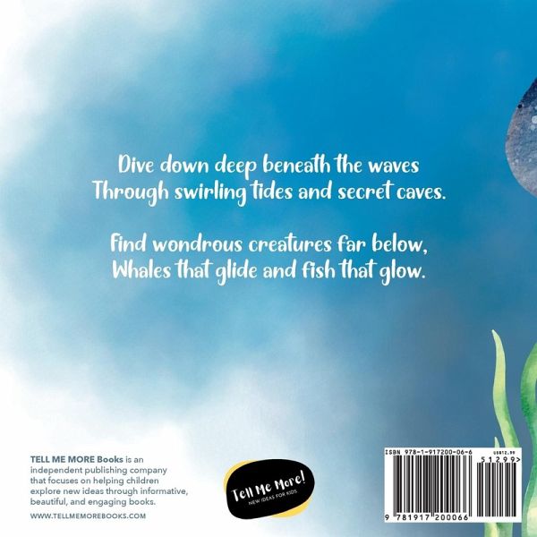 Go on a magical, rhyming journey beneath the ocean waves in this book for children aged 2-6. Dive down deep beneath the waves Through swirling tides and secret caves. Find wondrous creatures far below, Whales that glide and fish that glow. Dive through three ocean zones - sunlight, twilight, and midnight - and meet some of the wondrous sea creatures that live there, including rays, jellyfish, whales, turtles, seahorses, octopus, angler fish, vampire squid, and giant tube worms. Lyrical rhyming text and beautiful illustrations will captivate children who love fish and underwater animals. - Part of the Amazing Earth series - - Paperback - Full colour illustrations - 28 pages - 8.5 x 8.5 in (21.6 x 21.6 cm)