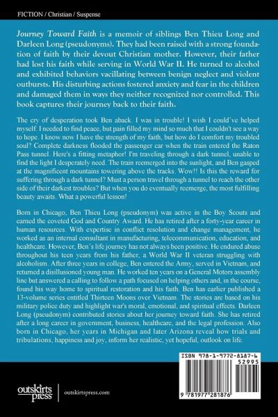 Born in Chicago, Ben Thieu Long (pseudonym) was active in the Boy Scouts and earned the coveted God and Country Award. He has retired after a forty-year career in human resources. With expertise in conflict resolution and change management, he worked as an internal consultant in manufacturing, telecommunication, education, and healthcare. However, Ben's life journey has not always been positive. He endured abuse throughout his teen years from his father, a World War II veteran struggling with alcoholism. After three years in college, Ben entered the Army, served in Vietnam, and returned a disillusioned young man. He worked ten years on a General Motors assembly line but answered a calling to follow a path focused on helping others and, in the course, found his way home to spiritual restoration and his faith. Ben has earlier published a 13-volume series entitled Thirteen Moons over Vietnam. The stories are based on his military police duty and highlight war's moral, emotional, and spiritual effects. Darleen Long (pseudonym) contributed stories about her journey toward faith. She has retired after a long career in government, business, healthcare, and the legal profession. Also born in Chicago, her years in Michigan and later Arizona reveal how trials and tribulations, happiness and joy, inform her realistic, yet hopeful, outlook on life.
