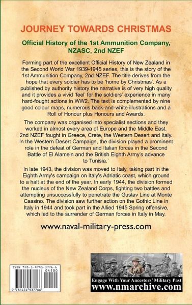 Forming part of the Official History of New Zealand in the Second World War 1939-1945 series, this is the story of the 1st Ammunition Company, 2nd NZEF. The title derives from the hope that every soldier has to be 'home by Christmas'.