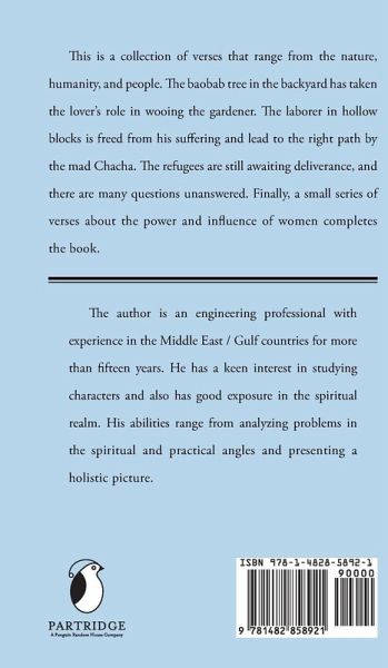 This is a collection of verses that range from the nature, humanity, and people. The baobab tree in the backyard has taken the lover's role in wooing the gardener. The laborer in hollow blocks is freed from his suffering and lead to the right path by the mad Chacha. The refugees are still awaiting deliverance, and there are many questions unanswered. Finally, a small series of verses about the power and influence of women completes the book.