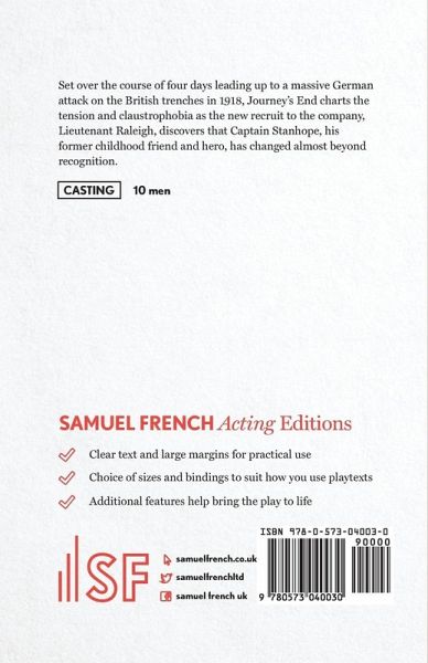 Casting: 10 m / Scenery: Interior The greatest of all English war plays, Journey's End shows the effect of war on a group of young officers. The play is a tragic and moving piece for advanced casts.