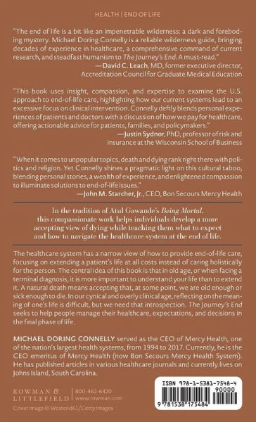 In the tradition of Atul Gawande's Being Mortal, this compassionate work helps individuals develop a more accepting view of dying while teaching them what to expect and how to navigate the healthcare system at the end of life. In elderhood, the health care system has a narrow view of how to provide care. It focuses on extending a patient's life at all costs, with an over-reliance on machines and procedures, instead of caring holistically for the person. Accordingly, many of us will likely spend our final weeks in long-term care facilities or an ICU. Dying at home, peacefully, and surrounded by family is almost impossible in our world--and our fear of death is a major contributor to this impossibility. Fittingly, the central idea of this book is that in old age, or when facing a terminal diagnosis, it is more important to understand your life rather than to extend it. While this may seem simple, its implications are profound. A natural death means accepting that, at some point, we are old enough or sick enough to die. In our cynical and overly clinical age, it is difficult to reflect on the meaning of one's life, but that kind of honest introspection is exactly what we need. Accordingly, The Journey's End seeks to help people manage their healthcare, their expectations, and their decisions in the final phase of life.