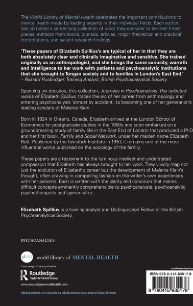 Journeys in Psychoanalysis: The selected works of Elizabeth Spillius traces the arc of her career from anthropology and entering psychoanalysis 'almost by accident', to becoming one of her generation's leading scholars of Melanie Klein.