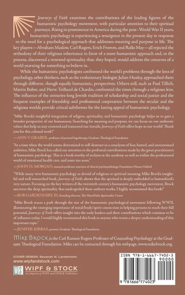 Journeys of Faith examines the contributions of the leading figures of the humanistic psychology movement, with particular attention to their spiritual journeys. Rising to prominence in America during the post-World War II years, humanistic psychology is experiencing a resurgence in the present day in response to the need for a psychological approach that addresses meaning and purpose in life. The key players--Abraham Maslow, Carl Rogers, Erich Fromm, and Rollo May--all rejected the orthodoxy of their religious inheritance in favor of a more humanistic approach and, in the process, discovered a renewed spirituality that, they hoped, would address the concerns of a world yearning for something to believe in. While the humanistic psychologists confronted the world's problems through the lens of psychology, other thinkers, such as the evolutionary biologist Julian Huxley, approached them through different, though equally humanistic, perspectives. Others still, such as Paul Tillich, Martin Buber, and Pierre Teilhard de Chardin, confronted the times through a religious lens. The influence of the centuries-long Jewish tradition of scholarship and social justice and the frequent examples of friendship and professional cooperation between the secular and the religious worlds provide critical subthemes for the lasting appeal of humanistic psychology.