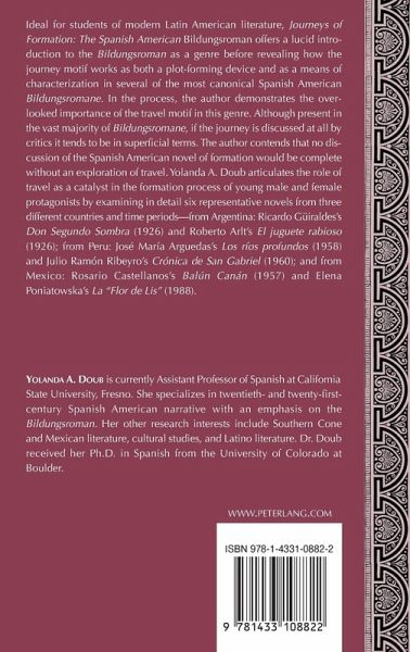 Ideal for students of modern Latin American literature, Journeys of Formation: The Spanish American 'Bildungsroman' offers a lucid introduction to the Bildungsroman as a genre before revealing how the journey motif works as both a plot-forming device and as a means of characterization in several of the most canonical Spanish American Bildungsromane. In the process, the author demonstrates the overlooked importance of the travel motif in this genre. Although present in the vast majority of Bildungsromane, if the journey is discussed at all by critics it tends to be in superficial terms. The author contends that no discussion of the Spanish American novel of formation would be complete without an exploration of travel. Yolanda A. Doub articulates the role of travel as a catalyst in the formation process of young male and female protagonists by examining in detail six representative novels from three different countries and time periods - from Argentina: Ricardo Güiraldes's Don Segundo Sombra (1926) and Roberto Arlt's El juguete rabioso (1926); from Peru: José María Arguedas's Los ríos profundos (1958) and Julio Ramón Ribeyro's Crónica de San Gabriel (1960); and from Mexico: Rosario Castellanos's Balún Canán (1957) and Elena Poniatowska's La «Flor de Lis» (1988).
