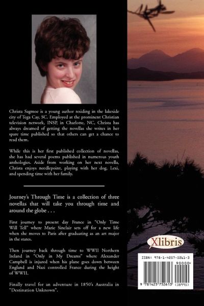 Journey Through Time in a collection of three novellas that will take you through time and around the globe... First journey to present day France in "Only Time Will Tell" where Marie Sinclair sets off for a new life when she moves to Paris after graduating as an art major in the states. Unsure of what she'd like to do she comes across an advertisement for an art restoration expert needed at a chateau near the Loire Valley. She travels there and finds a dashing but very wild young man, Pierre, who is restoring his families' chateau. Over time she builds a deep dislike for Pierre even though he does everything to win her purely because she is the one woman he can't have. Pierre and Marie soon have a huge disagreement resulting in Marie leaving for a much needed break, where she meets Basil St. James a historian from London. After touring the chateau of the Loire together Marie returns to Pierre's chateau and continues to be courted by Basil. This of course causes Pierre to be miserable. However after Pierre is injured in an accident Marie finds that she has feelings for him, but they are both too stubborn to be the first to admit it. It's only after Basil proposes that Pierre at last reveals his true feelings, but is it too late? Only Time Will Tell.... Then journey back through time to WWII Northern Ireland where Alexander Campbell is injured when he plane goes down between England and Nazi controled France during the height of WWII. He losses his memory and much more. While recovering in a London hospital he is flooded with memories, and struggles to piece together the fragmented pieces of his past. All dreams seem to lead to one thing, a woman that he is unable to remember who comes to him only in his dreams. When he is at last identified he is sent home to Belfast where he comes face to face with the very woman he thought he had merely imagined, Brooke Hamilton. He soon finds that they were more than mere acquaintances, they had been betrothed! Thinking him dead Brooke had been forced to agree to marry another to save her family from losing their land. Alexander becomes determined to win her back, but will he be too late? Finally travel for an adventure in 1850's Australia in "Destination Unknown". Never would Andrew Thomason have expected what lay in store when the fates dealt him the hand of being shanghaied on a pirate ship that would leave him on the shores of the wild and untamed continent of Australia. Reunited with a long-lost brother, Lawrence they strike out on their own to make a life for themselves only to be sepearted once again. Love then finds its way to both young men in the gold fields of Victoria and in the port town of Adeliade. Hardship and redemption at every turn the brother's struggle to make their lives their own. Will any good come from this Destination Unknown?
