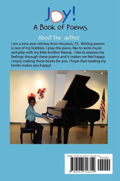 These poems are written by a nine year old elementary school boy. Each poem is inspired by what he has seen,heard or read. His imagination takes flight through his wonderful illustrations that accompany each poem.