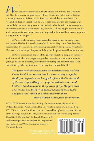 When Pat Power retired as Auxiliary Bishop of Canberra and Goulburn in 2012, there was an outpouring of tributes to him and to his time as Bishop. A moving selection of these can be found on the archdiocesan website. His Archbishop, Francis Carroll, said he was ‘a man of conviction and courage who has publicly espoused many a cause, particularly when injustice, disadvantage and discrimination were at stake. From this, not only Catholic people but many in the wider community have found someone to speak for them and have drawn hope and strength from his support.’ Pat Power spoke on many occasions and in many forums on many issues and themes. This book is a collection of such pieces. They come from homilies, occasional addresses, newspaper opinion pieces, letters and personal reflections. They cover a wide range of topics, and always with openness and humble respect. Pat Power sees himself as part of the pilgrim church, ‘a people on the move, with a sense of adventure, supporting and encouraging one another, sometimes getting a bit lost or bloodied, sometimes questioning the path they have taken, but ultimately believing that Jesus is the way, the truth and the life.