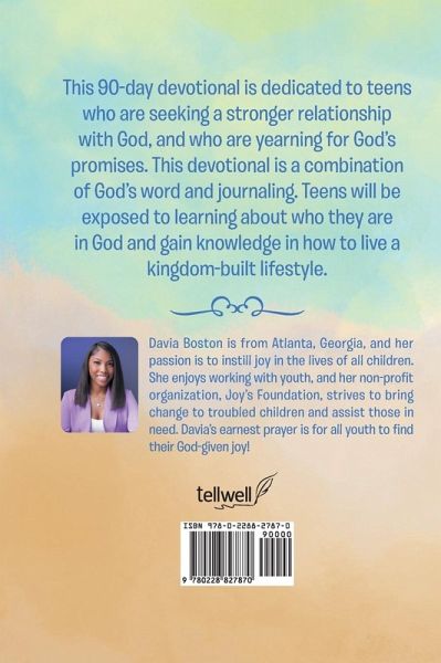 This 90-day devotional is dedicated to teens who are seeking a stronger relationship with God, and who are yearning for God's promises. This devotional is a combination of God's word and journaling. Teens will be exposed to learning about who they are in God and gain knowledge in how to live a kingdom-built lifestyle.