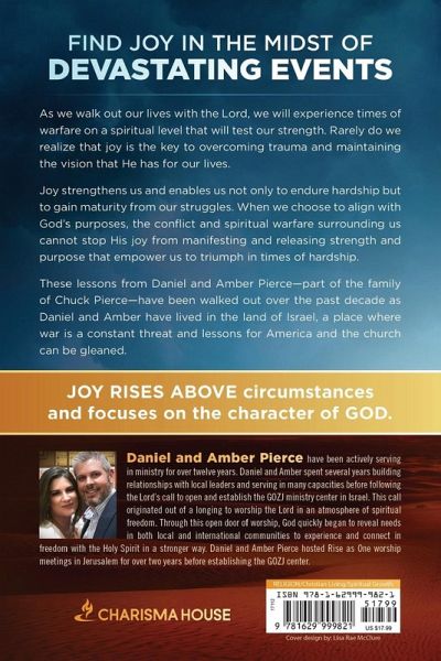 If you don't have joy, you won't have the strength to overcome. This book will help you better understand how even in the midst of crisis and chaos, God wants to use joy as a weapon to tear down the attacks of the enemy and give you the spiritual bandwidth to overcome. Joy in the War is a unique book about finding joy in the midst of devastating events, including those happening in America and around the world. The Lord desires that His children know He is a covenant God. When we choose to align with His purposes, even the conflict and warfare surrounding us cannot stop His joy from manifesting and releasing a strength and purpose that empowers us to triumph. We can learn not to fear war or impending doom as we realize that overcoming joy can be our portion even in times of hardship. These lessons from Daniel and Amber Pierce--part of the legacy family of Chuck Pierce--have been walked out over the past decade as they have lived in the Land of Israel: a place where war is a constant threat and lessons for America and the church can be gleaned.