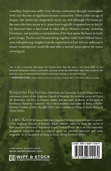 Countless Americans suffer from chronic joylessness through meaningless work and the loss of significant human connection. Often called an age of despair, late modernity desperately needs joy, and although Christians are the ones who have access to it, many have tragically forgotten how to find it. Joy Renewed takes a hard look at what afflicts Western society, including Christians, and provides a reorientation of life that opens the heart to God's good design. Fischer and Kanana bring together truth from biblical narratives with glittering insights from the experience of East African suffering to dissect contemporary social ills and offer a layered prescription for rediscovering joy.