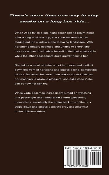 There's more than one way to stay awake on a long bus ride... When Jade takes a late-night coach ride to return home after a long business trip, she soon becomes bored staring out the window at the dimming landscape. With her phone battery depleted and unable to sleep, she hatches a plan to stimulate herself in the darkened cabin while the other passengers doze quietly next to her. She takes a small vibrator out of her purse and stuffs it down the front of her jeans and enjoys a long, stimulating climax. But when her seat mate wakes up and catches her moaning in obvious pleasure, she asks Jade if she can borrow her sex toy. While Jade becomes increasingly turned on watching one passenger after another take turns pleasuring themselves, eventually the entire back row of the bus strips down and enjoys a private orgy unbeknownst to the oblivious driver. Jade's Erotic Adventures: Jade's Erotic Adventures is a series of stories following the adventures of recent divorcée Jade, who embarks on a journey of sexual reawakening when her passionless marriage dissolves. Looking to expand her sexual horizons, she experiences one exciting escapade after another with a bevy of new (male, female, and transgender) partners. Each story is a standalone book that can be read in any order.