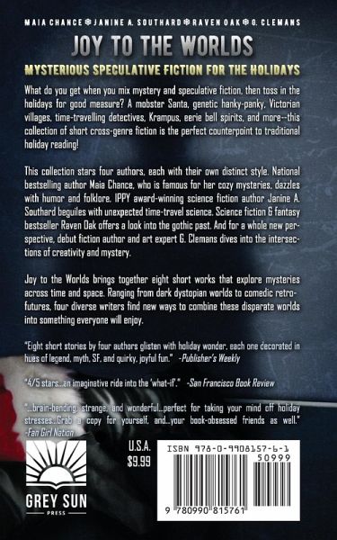 What do you get when you mix mystery and speculative fiction, then toss in the holidays for good measure? A mobster Santa, genetic hanky-panky, Victorian villages, time-travelling detectives, Krampus, eerie bell spirits, and more-this collection of short cross-genre fiction is the perfect counterpoint to traditional holiday reading! This collection stars four authors, each with their own distinct voice. National bestselling author Maia Chance, who is famous for her cozy mysteries, dazzles with humor and folklore. IPPY award-winning science fiction author Janine A. Southard beguiles with unexpected time-travel science. Science fiction and fantasy bestseller Raven Oak offers a look into the gothic past. And for a whole new perspective, debut fiction author and art expert G. Clemans dives into the intersections of creativity and mystery. Joy to the Worlds brings together eight short works that explore mysteries across time and space. Ranging from dark dystopian worlds to comedic retro-futures, four diverse writers find new ways to combine these disparate worlds into something everyone can enjoy!