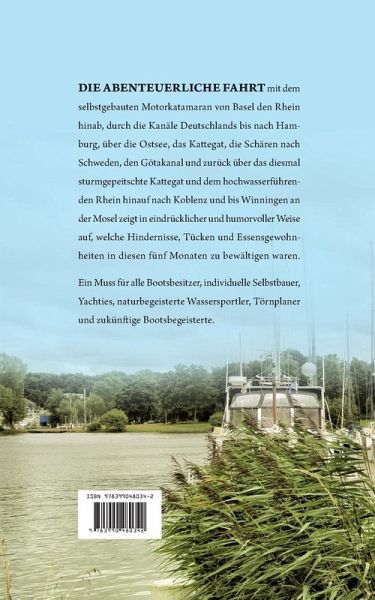 Die abenteuerliche Fahrt mit dem selbstgebauten Motorkatamaran von Basel den Rhein hinab, durch die Kanäle Deutschlands bis nach Hamburg, über die Ostsee, das Kattegat, die Schären nach Schweden, den Götakanal und zurück über das diesmal sturmgepeitschte Kattegat und dem hochwasserführenden Rhein hinauf nach Koblenz und bis Winningen an der Mosel zeigt in eindrücklicher und humorvoller Weise auf, welche Hindernisse, Tücken und Essensgewohnheiten in diesen fünf Monaten zu bewältigen waren. Ein Muss für alle Bootsbesitzer, individuelle Selbstbauer, Yachties, naturbegeisterte Wassersportler, Törnplaner und zukünftige Bootsbegeisterte.