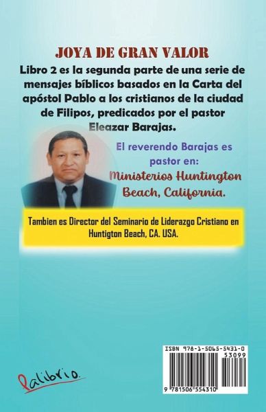 JOYA DE GRAN VALOR Libro 2 es la segunda parte de una serie de mensajes bíblicos basados en la Carta del apóstol Pablo a los cristianos de la ciudad de Filipos, predicados por el pastor Eleazar Barajas. El reverendo Barajas es pastor en: Ministerios Huntington Beach, California. Tambien es Director del Seminario de Liderazgo Cristiano en Huntigton Beach, CA. USA.