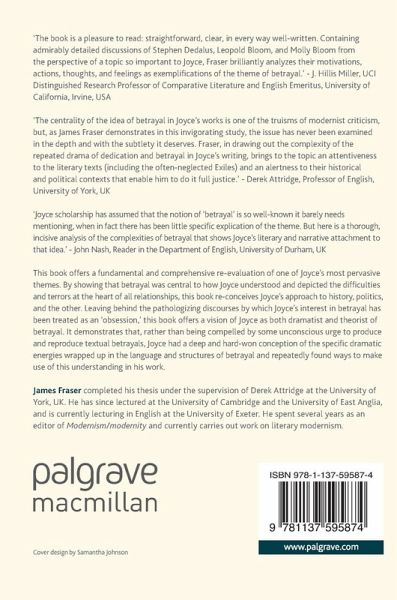 This book offers a fundamental and comprehensive re-evaluation of one of Joyce's most pervasive themes. By showing that betrayal was central to how Joyce understood and depicted the difficulties and terrors at the heart of all relationships, this book re-conceives Joyce's approach to history, politics, and the other. Leaving behind the pathologizing discourses by which Joyce's interest in betrayal has been treated as an 'obsession,' this book offers a vision of Joyce as both dramatist and theorist of betrayal. It demonstrates that, rather than being compelled by some unconscious urge to produce and reproduce textual betrayals, Joyce had a deep and hard-won conception of the specific dramatic energies wrapped up in the language and structures of betrayal and repeatedly found ways to make use of this understanding in his work.