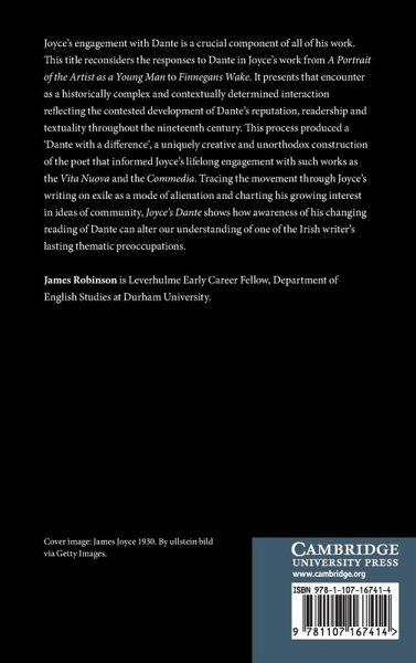 This title explores the ways in which James Joyce read the medieval poet Dante Alighieri and appropriated his works in his own writing. Placing Joyce's interest in Dante within his historical context, Robinson shows how Dante enabled Joyce to develop the key themes of exile and community within his work.