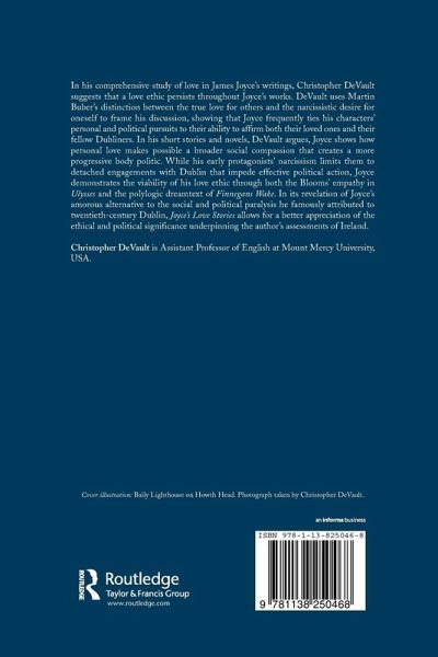 In his comprehensive study of love in James Joyce's writings, Christopher DeVault suggests that a love ethic persists throughout Joyce's works. DeVault uses Martin Buber's distinction between the true love for others and the narcissistic desire for oneself to frame his discussion, showing that Joyce frequently ties his characters' personal and political pursuits to their ability to affirm both their loved ones and their fellow Dubliners. In his short stories and novels, DeVault argues, Joyce shows how personal love makes possible a broader social compassion that creates a more progressive body politic. While his early protagonists' narcissism limits them to detached engagements with Dublin that impede effective political action, Joyce demonstrates the viability of his love ethic through both the Blooms' empathy in Ulysses and the polylogic dreamtext of Finnegan's Wake. In its revelation of Joyce's amorous alternative to the social and political paralysis he famously attributed to twentieth-century Dublin, Joyce's Love Stories allows for a better appreciation of the ethical and political significance underpinning the author's assessments of Ireland.