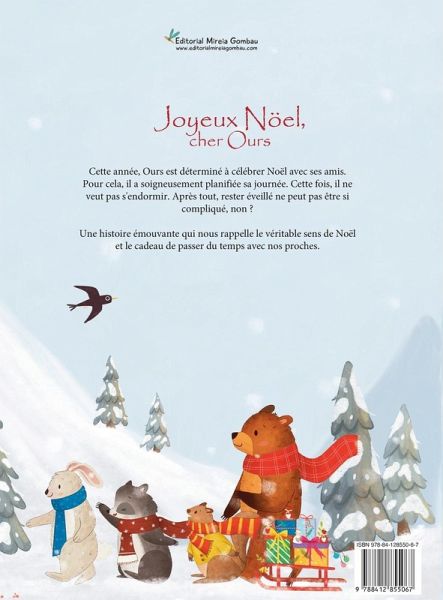 Cette année, Ours est déterminé à célébrer Noël avec ses amis. Pour cela, il a prévu une journée très occupée. Cette fois, il ne veut pas s'endormir. Après tout, rester éveillé ne peut pas être si difficile, n'est-ce pas ? ¿¿¿¿¿ Joyeux Nöel, cher Ours est une histoire émouvante qui nous rappelle le véritable sens de Noël et le cadeau de passer du temps avec nos proches. Aux côtés de Ours et de ses amis, nous découvrirons que le plus grand cadeau que nous puissions recevoir est l'amour de nos êtres chers et le temps que nous passons avec eux. Avec des illustrations amusantes et colorées, ce livre est le cadeau idéal pour Noël. Parfait pour passer un bon moment de lecture en famille.