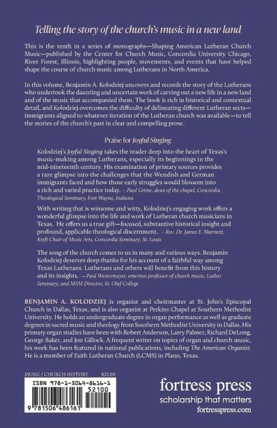 In this volume, Kolodziej presents the story of the Lutherans who undertook the daunting and uncertain work of carving out a new life in a new land, and of the music that accompanied them. This is the tenth in a series of monographs--Shaping American Lutheran Church Music--published by the Center for Church Music, Concordia University Chicago.