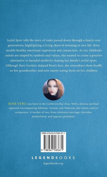 Joyful Spots tells the story of traits passed down through a family over generations, highlighting a living chain of meaning in new life. Rose models healthy emotional expression and connection. As our children's minds are shaped by symbols and values, she wanted to create a positive alternative to harmful media by sharing her family's joyful spots. Although their freckles skipped Rose's face, she remembers them fondly on her grandmother and now enjoys seeing them on her children.