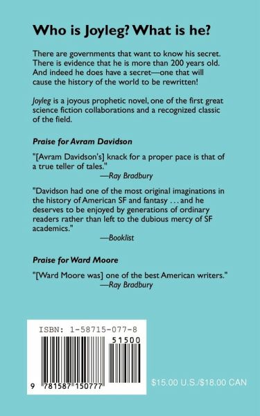 Joyleg is a science fiction novel co-authored by Avram Davidson and Ward Moore, first serialized in Fantastic magazine in 1962 and later published in paperback by Pyramid Books the same year. The story follows Isachar Joyleg, a man discovered in the Appalachian backwoods who appears to be over 200 years old, having served in the American Revolutionary War. His longevity is attributed to daily soaks in a special moonshine of his own making. The narrative delves into the comedic and satirical consequences of his discovery, exploring themes of bureaucracy, politics, and the clash between past and present.