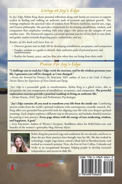 In Joy's Edge, Robin King shares personal reflections along with hands-on exercises to support readers in finding and walking an authentic path of personal and spiritual growth. Her writings emphasize the practical value of wisdom from Western medicine, martial arts, yoga, and Eastern philosophy. She provides a framework for developing mindfulness, wisdom, and compassion that emphasizes working with your edges-the places on the margins of your comfort zone. Her framework supports a personal spiritual practice of any faith or non-faith, and guides readers towards deepening peace, authenticity, and joy. Readers of this book will learn how to: • Discover greater ease in daily life by developing mindfulness, acceptance, and compassion. • Employ wisdom as a guide to identify their authentic path of personal power and transformation. • Realize the beauty, peace, and joy that arise when they are living from their truth.