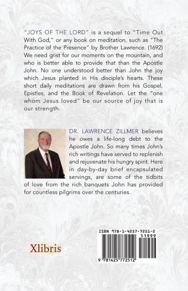 "JOYS OF THE LORD" is a sequel to " Time Out With God," or any book on meditation, such as "The Practice of the Presence" by Brother Lawrence. (1692) We need grist for our moments on the mountain, and who is better able to provide that than the Apostle John. No one understood better than John the joy which Jesus planted in His disciple's hearts. These short daily meditations are drawn from his Gospel, Epistles, and the Book of Revelation. Let the "one whom Jesus loved" be our source of joy that is our strength.