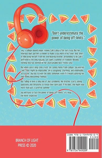 Summer isn't all sunshine and rainbows, but it might be pretty close. College-bound singer, Joy, has never been all that graceful, never been in love, and never really lived for herself. But when she's suddenly free from her overbearing brother, Joy dreams of living out a summer full of music, sunshine, and an empty schedule. There's just one catch... Joy's hilarious duet partner, Cale, needs her to be his fake girlfriend so he can attract Lena, Joy's unattainable best friend. Cale's plan is a tad crazy, but if Joy knows anything about Cale, it's that he can make crazy work in his favor. But when Lena's long-time crush, Jin, returns home for the summer, Joy realizes that Cale's chances might be impossible. Jin is nothing short of perfect. Easygoing, charming, and undeniably attractive... Joy has to find a way to even the odds without jeopardizing the friendships she's worked so hard for. Things get complicated when Joy falls head over heels for the boy that was "off-limits." Just when she thinks her first love might be the real thing, her controlling brother-and her dark past-get in the way. Joy could lose a lot more than a carefree summer. Piper Bee's debut novel is an adorable love story with a watermelon-sweet love triangle and an epic playlist that could change the whole game.