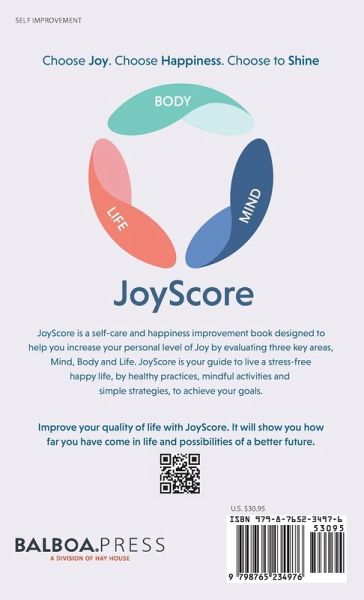 JoyScore is a self-care and happiness improvement book designed to help you increase your personal level of Joy by evaluating 3 key areas - Mind, Body and Life. JoyScore is your guide to live a stress-free, happy life by healthy practices, mindful activities and simple strategies, to achieve your goals.