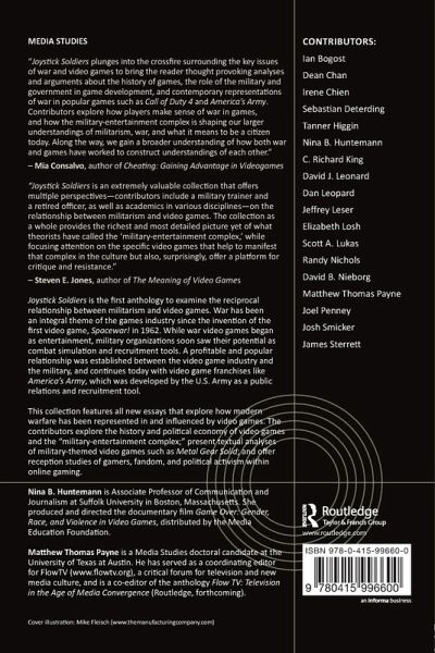 This collection features all new essays that explore how modern warfare has been represented in and influenced by video games. The contributors explore the history and political economy of video games and the "military-entertainment complex;" present textual analyses of military-themed video games such as Metal Gear Solid; and offer reception studies of gamers, fandom, and political activism within online gaming.