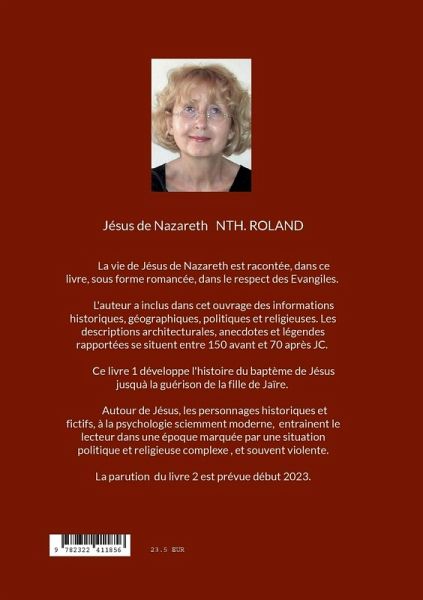 La vie de Jésus de Nazareth est racontée, dans ce livre, sous forme romancée, dans le respect des Evangiles. L'auteur a inclus dans cet ouvrage des informations historiques, géographiques, politiques et religieuses. Les descriptions architecturels, anecdotes et légendes rapportées se situent entre 150 avant et 70 après JC. Ce livre 1/2 développe l'histoire du baptème de Jésus jusquà la guérison de la fille de Jaïre. Autour de Jésus, les personnages historiques et fictifs, à la psychologie sciemment moderne, entrainent le lecteur dans une époque marquée par une situation politique et religieuse complexe et souvent violente.