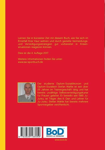 In diesem Buch finden Sie effektive Techniken speziell für Frauen, die in einer Notwehrsituation ihre Gesundheit oder ihr Leben beschützen möchten. Ganz bewusst wurde auf unrealistische Show-Techniken sowie auf für die Polizei sinnvolle Festhalte- und Abführtechniken verzichtet. Lernen Sie mit diesem Buch, sich mit nur 11 Techniken effektiv zu verteidigen. Grundsätzlich sollten die Selbstverteidigungstechniken so einfach wie möglich sein. Was kompliziert ist, wird im Ernstfall unter Stress und Gegenwehr des Angreifers eh nicht funktionieren. Warum gerade dieses Buch? Es gibt unzählige Angebote von Frauenselbstverteidigungs-Büchern, -Kursen und -Systemen. Allerdings wurde bei der Entwicklung der meisten Systeme etwas Entscheidendes vernachlässigt: Die körperlichen Gegebenheiten von Frauen, die häufig aufgrund von körperlicher Unterlegenheit viele der dort angedachten Techniken entweder gar nicht ausführen können oder nur mit einem großen Risiko, dass sie selbst dabei zu Schaden kommen. Lernen Sie in kürzester Zeit mit nur 11 Techniken, wie Sie sich im Ernstfall Ihrer Haut wehren und durch gezielte Vermeidungs- und Verteidigungsstrategien gut vorbereitet in Krisensituationen reagieren können. Dies ist die 4. Auflage 2017.Weitere Informationen finden Sie unter: www.sw-sportbuch.deDer studierte Diplom-Sozialökonom und Diplom-Sozialwirt Stefan Wahle ist seit mehr als 30 Jahren im Trainergeschäft tätig und hat bereits unzählige Selbstverteidigungskurse geleitet. Er betreibt seit 1985 Kampfkünste, ist Träger des 6. Dan Ju-Jutsu, Lehrer für Ju-Jutsu und Krav Maga Instructor verschiedener Verbände.