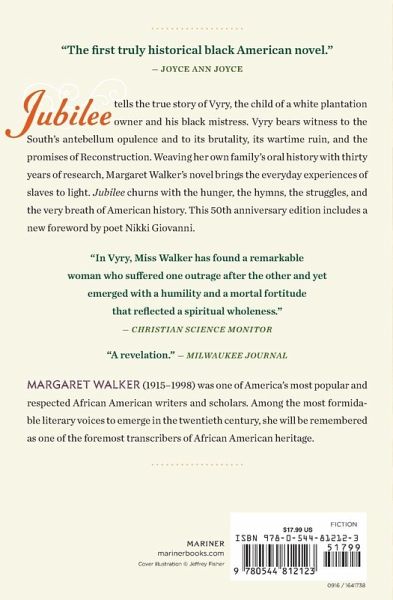 A 50th anniversary edition of Margaret Walker's best-selling classic with a foreword by Nikki Giovanni Chronicles the triumph of a free spirit over many kinds of bondage. "New York Times Book Review Jubilee "tells the true story of Vyry, the child of a white plantation owner and his black mistress.Vyry bears witness to the South s antebellum opulence and to its brutality, its wartime ruin, and the promises of Reconstruction.Weaving her own family s oral history with thirty years of research, Margaret Walker s novel brings the everyday experiences of slaves to light."Jubilee "churns with the hunger, the hymns, the struggles, and the very breath of American history."