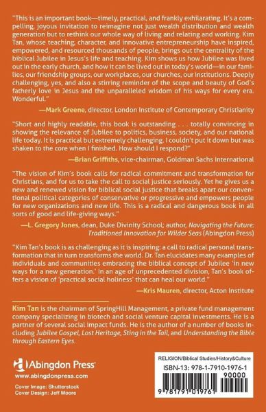 "Impact Investor" Kim Tan challenges the church to ask whether or not the gospel as we interpret it today really embodies the jubilee vision of the Bible. Imagine a group of forty adults living in a community, assisting each other to buy houses, sharing material wealth and releasing the surplus to help others as a practical outworking of the biblical principles of jubilee. Kim Tan was part of this group who defined principles of sacrificial generosity, stewardship, and social holiness. This book is in two parts. First it walks through the Old Testament on the Jubilee program as given in the covenant to Israel at Mt. Sinai. An idealistic vision was followed by the failure of Israel to practice this teaching. We trace the Jubilee practices in the New Testament through the early Church and later Church history. The second part focuses on modern expressions of Jubilee as it has caught the imagination of various individuals and groups working out different aspects of the Jubilee in their lives. Modern expressions of the biblical Jubilee include: 1. Communities sharing goods 2. Wealth creation & distribution 3. Cancellation of debt 4. Feeding the widows 5. Set the captives free 6. Stewarding the environment