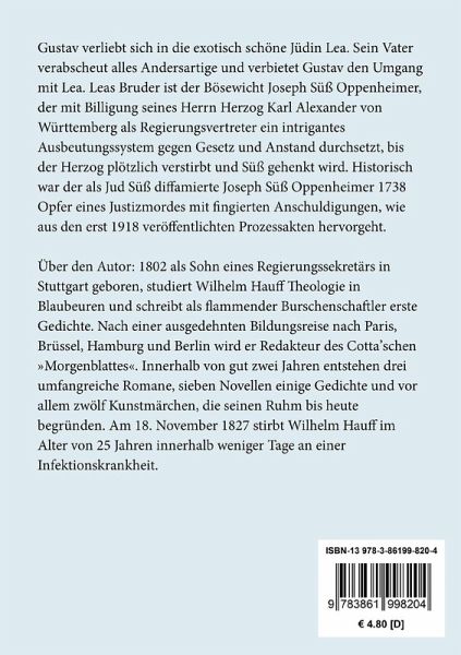 Gustav verliebt sich in die exotisch schöne Jüdin Lea. Sein Vater verabscheut alles Andersartige und verbietet Gustav den Umgang mit Lea. Leas Bruder ist der Bösewicht Joseph Süß Oppenheimer, der mit Billigung seines Herrn Herzog Karl Alexander von Württemberg als Regierungsvertreter ein intrigantes Ausbeutungssystem gegen Gesetz und Anstand durchsetzt, bis der Herzog plötzlich verstirbt und Süß gehenkt wird. Historisch war der als Jud Süß diffamierte Joseph Süß Oppenheimer 1738 Opfer eines Justizmordes mit fingierten Anschuldigungen, wie aus den erst 1918…mehr