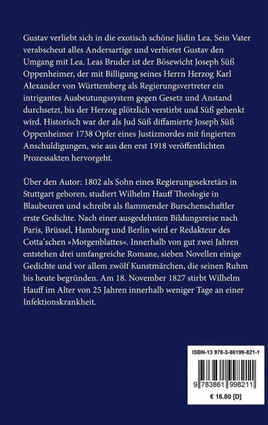 1802 als Sohn eines Regierungssekretärs in Stuttgart geboren, studiert Wilhelm Hauff Theologie in Blaubeuren und schreibt als flammender Burschenschaftler erste Gedichte. Nach einer ausgedehnten Bildungsreise nach Paris, Brüssel, Hamburg und Berlin wird er Redakteur des Cotta'schen "Morgenblattes". Innerhalb von gut zwei Jahren entstehen drei umfangreiche Romane, sieben Novellen einige Gedichte und vor allem zwölf Kunstmärchen, die seinen Ruhm bis heute begründen. Am 18. November 1827 stirbt Wilhelm Hauff im Alter von 25 Jahren innerhalb weniger Tage an einer Infektionskrankheit.