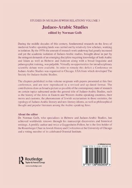 Chapter 1 The Emergence of the Qayraw?n Jewish Community and its Importance as a Maghrebi Community, Menahem Ben-Sasson; Chapter 2 Jewish Thought in Iraq in the 10th Century, H. Ben-Shammai; Chapter 3 Judaeo-Arabic Thought in Spain and North Africa: Problems and Prospects, L. V. Berman; Chapter 4 The Linguistic Status of Medieval Judeo-Arabic, Joshua Blau; Chapter 5 Popular Literature in Medieval Jewish Arabic, William M. Brinner; Chapter 6 Jewish Communal Organization in Medieval Egypt: Research, Results and Prospects, Mark R. Cohen; Chapter 7 Judaeo-Arabic Mystical Writings of the XIIIth-XIVth Centuries, Paul B. Fenton; Chapter 8 Philosophy or Exegesis: Perennial Problems in the Study of Some Judaeo-Arabic Authors, Hillel Fradkin; Chapter 9 1The text is essentially as delivered at the Conference on Judaeo-Arabic Studies, University of Chicago, May 6-8, 1984. I would like to thank Part Icipants in the conference for their helpful comments., Mordechai A. Friedman; Chapter 10 The Babylonian Encounter and the Exilarchic House in the Light of Cairo Geniza Documents and Parallel Arab Sources, Moshe Gil; Chapter 11 The Meaning of Terms Designating Love in Judaeo-Arabic Thought and Some Remarks on the Judaeo-Arabic Interpretation of Maimonides, Steven Harvey; Chapter 12 Jewish Aristotelianism: Trends from the 12th Through the 14th Centuries, Arthur Hyman; Chapter 13 1Revised Version of an Invited Commentary Delivered at the Conference on Judaeo-Arabic Studies, The University of Chicago, May 1984. I wish to thank Ralph Lerner, Jonathan Malino, and Joel Snyder for valuable comments on an earlier version of this paper., Josef Stern; Chapter 14 The Jews of the Islamic West in the Perspective of "La Longue Durée", Norman A. Stillman; Chapter 15 Jewish Polemics against Islam and Christianity in the Light of Judaeo-Arabic Texts, Sarah Stroumsa;