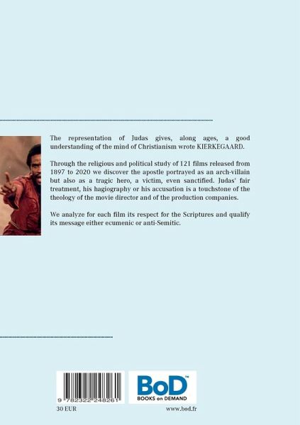The representation of Judas gives, along ages, a good understanding of the mind of Christianism wrote KIERKEGAARD. Through the religious and political study of 121 films released from 1897 to 2020 we discover the apostle portrayed as an arch-villain but also as a tragic hero, a victim, even sanctified. Judas' fair treatment, his hagiography or his accusation is a touchstone of the theology of the movie director and of the production companies. We analyze for each film its respect for the Scriptures and qualify its message either ecumenic or anti-Semitic.