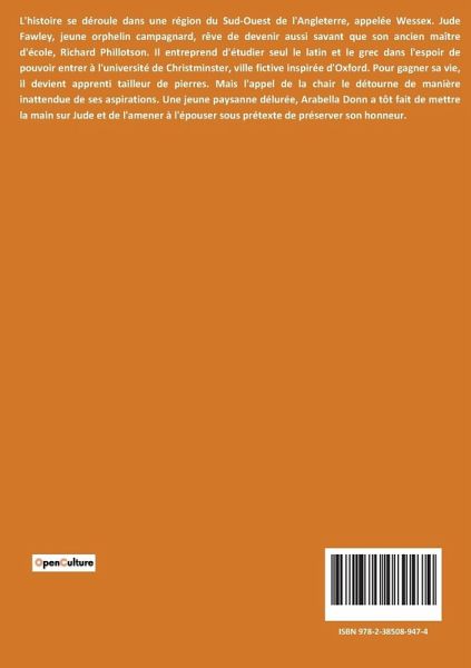 L'histoire se déroule dans une région du Sud-Ouest de l'Angleterre, appelée Wessex. Jude Fawley, jeune orphelin campagnard, rêve de devenir aussi savant que son ancien maître d'école, Richard Phillotson. Il entreprend d'étudier seul le latin et le grec dans l'espoir de pouvoir entrer à l'université de Christminster, ville fictive inspirée d'Oxford. Pour gagner sa vie, il devient apprenti tailleur de pierres. Mais l'appel de la chair le détourne de manière inattendue de ses aspirations. Une jeune paysanne délurée, Arabella Donn a tôt fait de mettre la main sur Jude et de l'amener à l'épouser sous prétexte de préserver son honneur.…mehr
