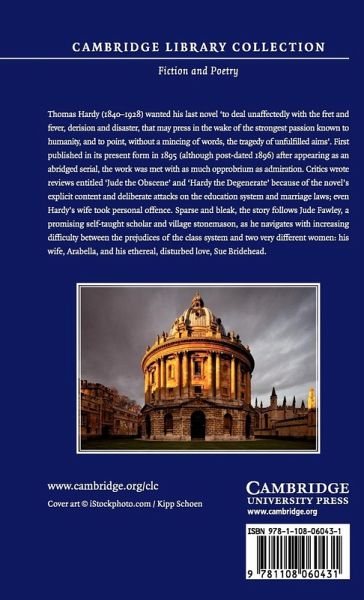 Thomas Hardy (1840-1928) wanted his last novel 'to deal unaffectedly with the fret and fever, derision and disaster, that may press in the wake of the strongest passion known to humanity, and to point, without a mincing of words, the tragedy of unfulfilled aims'. First published in its present form in 1895 (although post-dated 1896) after appearing as an abridged serial, the work was met with as much opprobrium as admiration. Critics wrote reviews entitled 'Jude the Obscene' and 'Hardy the Degenerate' because of the novel's explicit content and deliberate attacks on the education system and marriage laws; even Hardy's wife took personal offence. Sparse and bleak, the story follows Jude Fawley, a promising self-taught scholar and village stonemason, as he navigates with increasing difficulty between the prejudices of the class system and two very different women: his wife, Arabella, and his ethereal, disturbed love, Sue Bridehead.