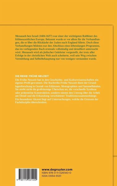 Menasseh ben Israel (1604 1657) war einer der bekanntesten Rabbiner des frühneuzeitlichen Europa. Berühmtheit erlangte er vor allem durch die Verhandlungen, die er mit Oliver Cromwell über die Rückkehr der Juden nach England führte. Doch die Englandverhandlungen machten nur den letzten Schritt in einer Reihe von Vermittlungsbemühungen aus. Menasses ganzes Schreiben und Wirken war von dem Programm bestimmt, christlichen Gelehrten Wissen über das Judentum zukommen zu lassen und den Sefarden so zu Anerkennung und einer Verbesserung ihrer politischen Situation zu verhelfen. Damit reagierte Menasseh als einer der Ersten auf das große Interesse, das in der christlichen Welt des 17. Jahrhunderts an Hebraica herrschte. Im vorliegenden Buch wird untersucht, wie genau Menasseh vorging und wie er sein Wissen so "übersetzte", dass es für christliche Leser interessant wurde. Gleichzeitig werden die Reaktionen von Menassehs Lesern in den Blick genommen, die die Informationen des Rabbiners ihrerseits "rückübersetzten". Am Ende wird Menasseh als ein jüdischer Gelehrter vorgestellt, der trotz aller Erfolge auch scheiterte, weil sein Weg zwischen Vermittlung und Selbstbehauptung nur von wenigen Zeitgenossen verstanden wurde.
