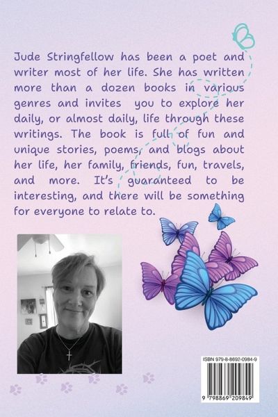 Jude's Almost Daily Blog Book 3 is the third installment of a wonderfully fun and unique journey into the life of this incredible author. With old and new blogs showcasing years of familial writing, Jude's insights border on the hilarious at times, but when she is called upon to be both serious and thoughtful, she is fully capable of delivering both. She continues to interest and entertain her audience with tales and stories from her past, as well as tales she's made up in her mind for their enjoyment. You'll find something to relate to, and you'll likely find yourself wanting to read more. If you haven't read her first two Blog Books, you can do that too! All of Jude's books are available on Amazon and through your favorite bookstores.