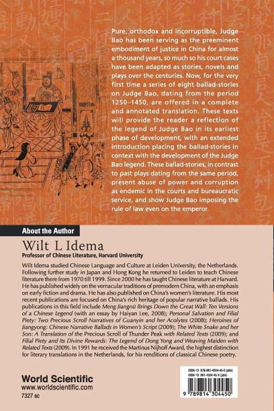 Pure, orthodox and incorruptible, Judge Bao has been serving as the preeminent embodiment of justice in China for almost a thousand years, so much so his court cases have been adapted as stories, novels and plays over the centuries. Now, for the very first time a series of eight ballad-stories on Judge Bao, dating from the period 12501450, are offered in a complete and annotated translation. These texts will provide the reader a reflection of the legend of Judge Bao in its earliest phase of development, with an extended introduction placing the ballad-stories in context with the development of the Judge Bao legend. These ballad-stories, in contrast to past plays dating from the same period, present abuse of power and corruption as endemic in the courts and bureaucratic service, and show Judge Bao imposing the rule of law even on the emperor.