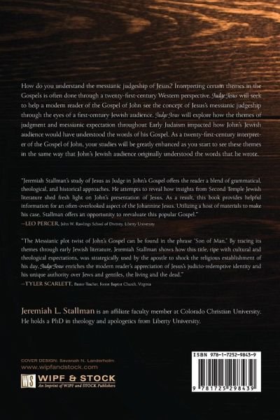 How do you understand the messianic judgeship of Jesus? Interpreting certain themes in the Gospels is often done through a twenty-first-century Western perspective. Judge Jesus will seek to help a modern reader of the Gospel of John see the concept of Jesus's messianic judgeship through the eyes of a first-century Jewish audience. Judge Jesus will explore how the themes of judgment and messianic expectation throughout Early Judaism impacted how John's Jewish audience would have understood the words of his Gospel. As a twenty-first-century interpreter of the Gospel of John, your studies will be greatly enhanced as you start to see these themes in the same way that John's Jewish audience originally understood the words that he wrote.