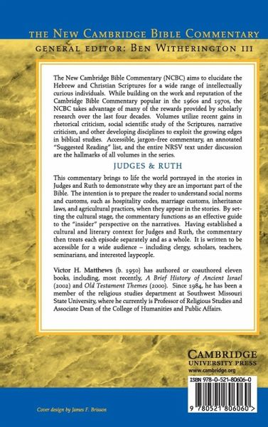 Bringing to life the world portrayed in the stories in Judges and Ruth, this commentary offers readers an "insider" perspective on the narratives. After establishing a cultural and literary context, Victor Matthews analyzes each episode separately and as a whole.