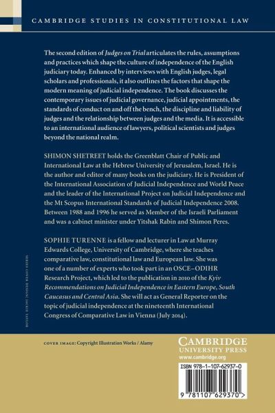 The second edition of Judges on Trial articulates the rules, assumptions and practices which shape the culture of independence of the English judiciary today. Enhanced by interviews with English judges, legal scholars and professionals, it also outlines the factors that shape the modern meaning of judicial independence. The book discusses the contemporary issues of judicial governance, judicial appointments, the standards of conduct on and off the bench, the discipline and liability of judges and the relationship between judges and the media. It is accessible to an international audience of lawyers, political scientists and judges beyond the national realm.