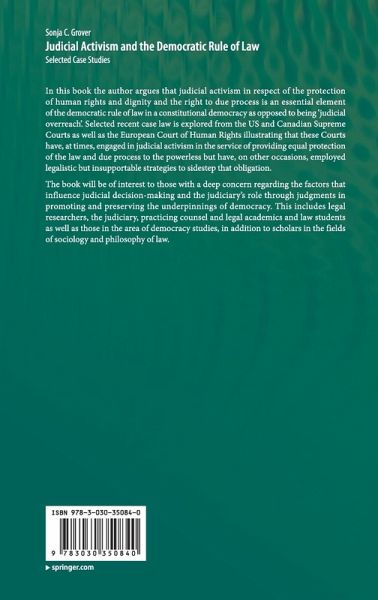 In this book the author argues that judicial activism in respect of the protection of human rights and dignity and the right to due process is an essential element of the democratic rule of law in a constitutional democracy as opposed to being 'judicial overreach'. Selected recent case law is explored from the US and Canadian Supreme Courts as well as the European Court of Human Rights illustrating that these Courts have, at times, engaged in judicial activism in the service of providing equal protection of the law and due process to the powerless but have, on other occasions, employed legalistic but insupportable strategies to sidestep that obligation.The book will be of interest to those with a deep concern regarding the factors that influence judicial decision-making and the judiciary's role through judgments in promoting and preserving the underpinnings of democracy. This includes legal researchers, the judiciary, practicing counsel and legal academics and law students as well as those in the area of democracy studies, in addition to scholars in the fields of sociology and philosophy of law.